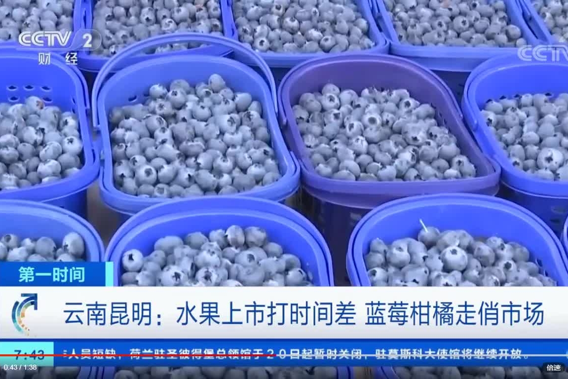 云南昆明:水果上市打時間差 藍莓柑橘走俏市場