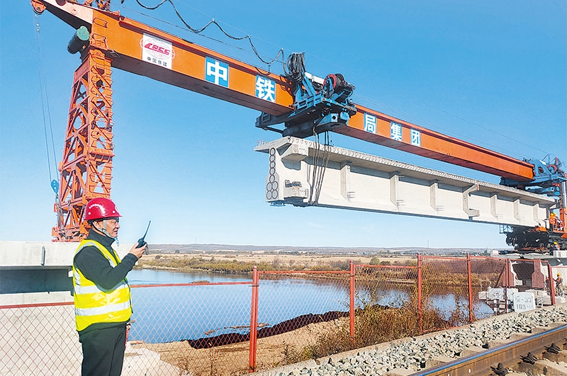 北黑鐵路升級(jí)改造工程新建遜別拉河鐵路大橋完成架梁