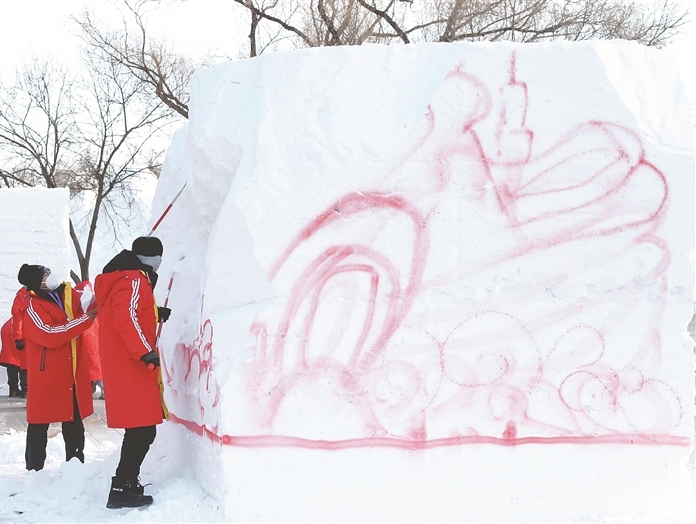 大學(xué)生雪雕比賽開(kāi)鏟