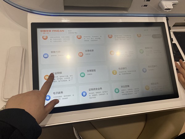 記者看到,智能網(wǎng)點既適老也適小。在互動體驗區(qū),由9塊顯示屏拼接而成的屏幕區(qū)格外引人注意。顯示屏分別顯示著網(wǎng)點的理財產(chǎn)品、營銷數(shù)據(jù)等,每15分鐘就會進行一次更新。不僅如此,客戶還可以在這里玩游戲、拍照片。李權介紹,很多時候,客戶的焦慮來自等待,一些帶著孩子來辦理業(yè)務的客戶,最怕小朋友無聊,通過互動體驗區(qū),小朋友可以在屏幕前玩游戲,這樣客戶辦理業(yè)務時也能更安心。“我們的服務區(qū)域用來滿足客戶日常業(yè)務辦理需求,而游戲、特色景點、交通、美食等混業(yè)信息的交互則能消除顧客的等候焦慮?!崩顧嗾f道。