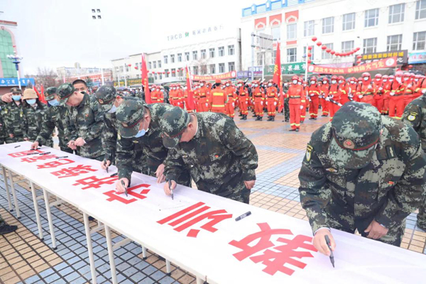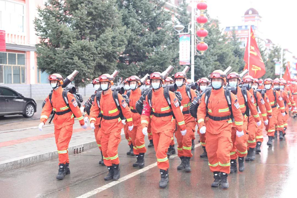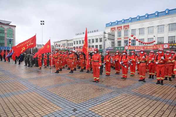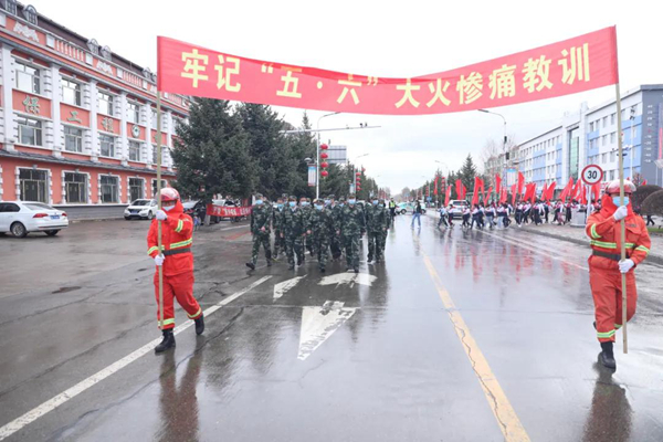 隨后防火警笛鳴起,由消防車、防火運(yùn)兵車、后勤保障車30余輛機(jī)動(dòng)車組成的車隊(duì)和千余名職工群眾組成的游行隊(duì)伍在鎮(zhèn)內(nèi)主要街道繞行一周,營(yíng)造了濃厚的防火宣傳氛圍。
