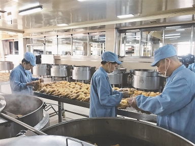 我省知名老字號(hào)裕昌燒雞生產(chǎn)線。