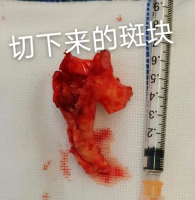 考慮到張大爺既往有腦梗死病史和糖尿病病史,入院后,孫國章副主任團(tuán)隊為張大爺進(jìn)行了術(shù)前精準(zhǔn)評估,完善頭部核磁共振、全腦血管造影檢查,并控制好血壓、血糖等各項指標(biāo)。隨后,孫國章副主任在顯微鏡下精準(zhǔn)為張大爺實(shí)施了頸動脈內(nèi)膜剝脫術(shù),切除了長度約4cm動脈粥樣硬化斑塊。據(jù)了解,由于是在頸動脈上做手術(shù),對手術(shù)技術(shù)及條件要求非常高,孫國章副主任在術(shù)中克服種種困難,才最終憑借豐富的臨床經(jīng)驗成功完成此次手術(shù)。