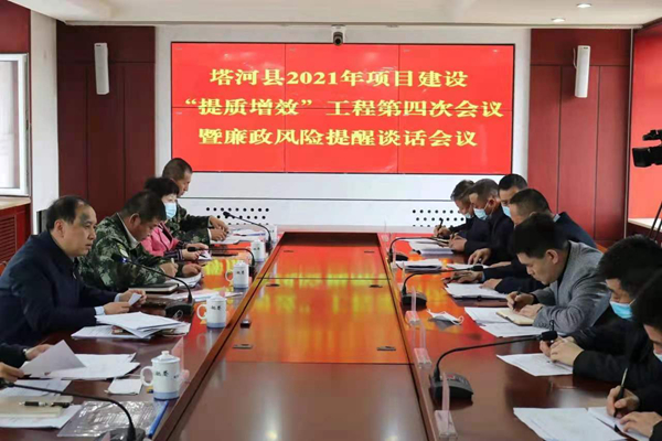 黑龍江經(jīng)濟(jì)網(wǎng)訊(王超 石佰龍 記者馬朝林)5月31日,塔河縣2021年項(xiàng)目建設(shè)“提質(zhì)增效”工程第四次會(huì)議暨廉政風(fēng)險(xiǎn)提醒談話會(huì)議在縣委四樓會(huì)議室召開(kāi),縣委書(shū)記林建軍、縣長(zhǎng)宋波出席會(huì)議并講話,縣委常委、副縣長(zhǎng)張躍科,副縣長(zhǎng)劉淑艷、鄂旭杰、劉煜及項(xiàng)目、財(cái)經(jīng)相關(guān)單位負(fù)責(zé)人參加會(huì)議。