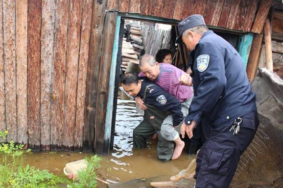 呼源鎮(zhèn)位于呼瑪河上游,是出現內澇最嚴重的城鎮(zhèn),6月18日凌晨3時,呼源鎮(zhèn)接到養(yǎng)豬戶孟慶波的求助,家中進水,家里的35頭豬、30余只雞需要轉移。鎮(zhèn)里接到求助后,地企聯(lián)手,在50余名呼源撲火隊員和10名呼源鎮(zhèn)機關工作人員的幫助下,經過三個小時的奮戰(zhàn),終于將孟慶波家的豬、雞轉運到安全地帶,幫她挽回了4萬多元的損失。同時,呼源鎮(zhèn)派出所排查被淹住戶情況,發(fā)現居民柳來玉被積水困在家中,由于老人行動不便,民警涉水深入家中,將老人背出家中,安頓在旅店休息。