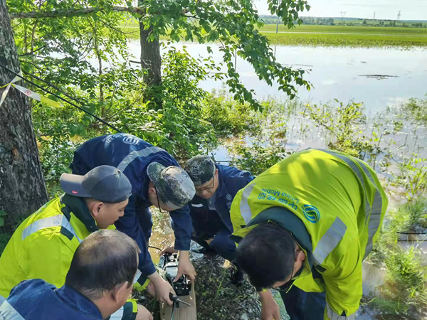 在呼瑪河監(jiān)測(cè)現(xiàn)場(chǎng),大興安嶺水文水資源中心副主任李闖介紹了防汛形勢(shì)嚴(yán)峻的呼瑪河下游水文情況,“呼瑪橋水文站截止到6月22日晚18時(shí),當(dāng)前水位96.20米,仍然超過(guò)警戒水位2.2米,超保證水位1.2米,后續(xù)我們水文部門仍然繼續(xù)密切關(guān)注水雨情,為當(dāng)?shù)胤姥床块T提供更好的技術(shù)支撐?!?/span>