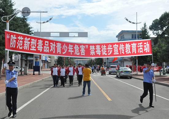 呼中區(qū)禁毒委組織禁毒成員單位,開(kāi)展以“防范新型毒品對(duì)青少年的危害”為主題的禁毒徒步宣傳活動(dòng)