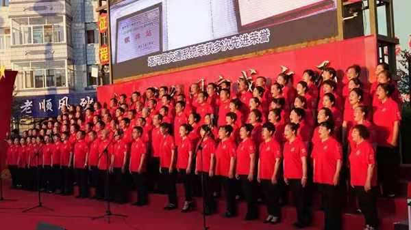 在歌聲中重溫百年歷程,追尋紅色記憶;在歌聲中砥礪無(wú)悔初心,汲取奮進(jìn)力量。塔河縣廣大職工群眾在縣新時(shí)代文明實(shí)踐廣場(chǎng)以大合唱的方式縱情高歌,用滿腔的熱忱唱出了對(duì)黨的熱愛(ài),對(duì)偉大祖國(guó)的贊美。由塔河縣森林之聲合唱團(tuán)表演的曲目《祖國(guó)頌》《我愛(ài)你中國(guó)》拉開(kāi)了演出的序幕,瞬間就調(diào)動(dòng)了人們的情緒,激發(fā)了人們的愛(ài)國(guó)豪情?!恫煌跣摹贰蹲呦驈?fù)興》《強(qiáng)軍戰(zhàn)歌》《忠誠(chéng)于黨》等一首首經(jīng)典曲目表達(dá)了塔河兒女對(duì)黨的忠誠(chéng)與熱愛(ài),展現(xiàn)了塔河人奮發(fā)有為、積極向上的良好精神風(fēng)貌。