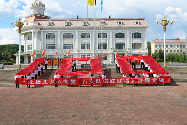 開展“高歌頌黨恩 永遠(yuǎn)跟黨走”唱紅歌活動。在生產(chǎn)一線、機(jī)關(guān)科室的400多名黨員干部、職工群眾用百米長幅歌頌黨、感謝黨,齊聲高唱《沒有共產(chǎn)黨就沒有新中國》《歌唱祖國》,激情嘹亮的歌聲唱出了對中國共產(chǎn)黨的熱愛和禮贊。全體隊員還用黨旗和紅綢擺出了100的造型,以特殊的方式向建黨100周年獻(xiàn)禮,充分展現(xiàn)了新時代林區(qū)礦山人愛黨愛國的精神風(fēng)貌。