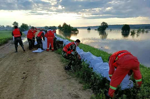 圍繞民生保障,辦急事、破難題。塔河林業(yè)局黨委始終堅持以人民為中心的發(fā)展理念,時刻把人民利益擺在至高無上地位。一方有難,八方支援,按照集團公司的要求部署,塔河林業(yè)局出動人員440余人,各類車輛和機械43臺,轉(zhuǎn)戰(zhàn)塔河縣開庫康鄉(xiāng)、依西肯鄉(xiāng)、呼瑪縣鷗浦鄉(xiāng),面對復雜嚴峻的汛情洪澇形勢,林業(yè)局帶隊領導迅速做出決策部署,組建防汛救災指揮部,集結“黨員先鋒隊”。全體黨員不畏艱險、率先垂范、靠前作戰(zhàn);全體防汛救災隊員不懼洪水,不畏高溫,逆水而行,裝卸沙袋、加筑江堤、封堵管涌,經(jīng)過8個晝夜的連續(xù)奮戰(zhàn),林業(yè)局防汛救災隊安全、圓滿地完成了防汛救災各項任務,以實際行動詮釋了“救民于水火、助民于危難”的使命擔當。