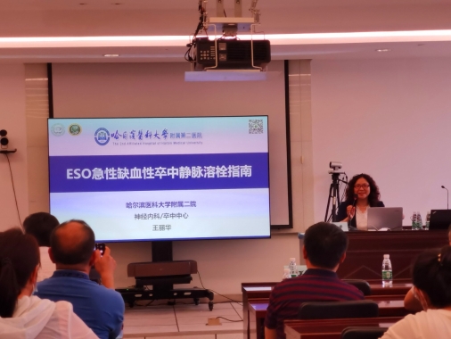大會同時邀請到中國卒中專科聯(lián)盟副主席、中國卒中中心管理指導委員會秘書長、哈爾濱醫(yī)科大學附屬第二醫(yī)院王麗華教授為大家?guī)砹恕禘SO急性缺血性卒中靜脈溶栓指南(2021)》,聚焦國際前沿。卒中中心秘書齊丹則以詳實的數(shù)據(jù)仔細分析了近兩年來中心的質(zhì)控工作,指出中心診療和流程的不足,為中心精細化管理提供了指導和依據(jù)。