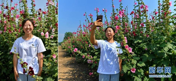 拼版照片:左圖為杜云芝在太原市小店區(qū)王吳村鮮花種植基地;右圖為杜云芝在鮮花種植基地進行直播(7月7日攝)。今年30歲的杜云芝外出務工近10年,作為一名資深銷售人員,她有著豐富的直播經(jīng)驗。近年來,太原市小店區(qū)王吳村大力發(fā)展鄉(xiāng)村旅游,杜云芝回到家鄉(xiāng),用手機記錄鄉(xiāng)村變化,宣傳家鄉(xiāng)美景。