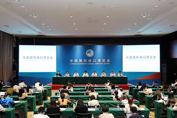 這是第四屆進(jìn)博會開幕倒計(jì)時(shí)100天新聞通氣會現(xiàn)場(7月26日攝)。新華社記者 方喆 攝