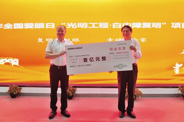 今年愛眼日“光明工程·白內障復明”項目座談會上,愛爾眼科通過愛眼公益基金會捐贈1億元助力鄉(xiāng)村振興