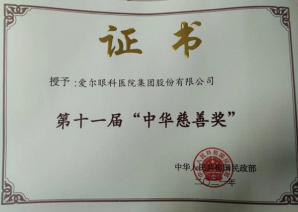 9月5日,是我國第6個“中華慈善日”。中國慈善領域政府榮譽獎項——第十一屆“中華慈善獎”評選表彰大會(視頻會議)在北京舉行,隆重表彰慈善領域為脫貧攻堅和抗擊新冠肺炎疫情等作出貢獻的單位、個人、慈善項目等。愛爾眼科醫(yī)院集團榮膺第十一屆“中華慈善獎”捐贈企業(yè)。這也是繼2018年榮獲第十屆“中華慈善獎”后,愛爾再度獲此殊榮。