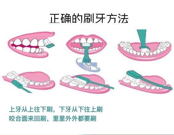 牙齒外面圓弧刷,牙齒里面顫動(dòng)刷;