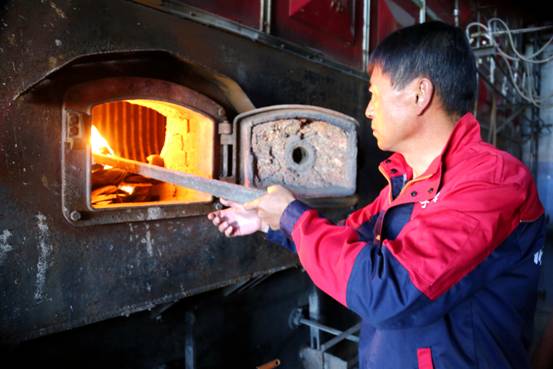 一大早,在呼中區(qū)房產(chǎn)維修與供暖中心鍋爐房?jī)?nèi),一派忙碌的景象,上煤間里傳送帶上的煤炭奔向鍋爐,工人們將引火柴投入到爐膛內(nèi),熊熊熱浪迎面撲來(lái)。