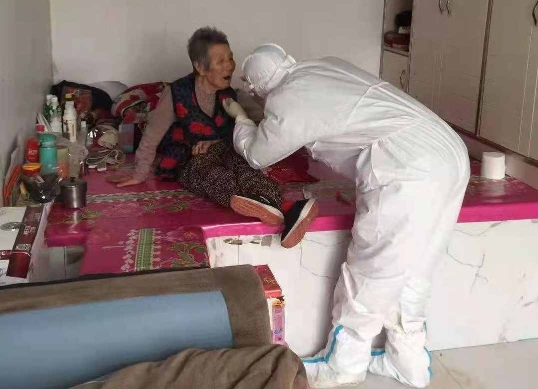 巴彥縣核酸采集現(xiàn)場(chǎng)還活躍著省醫(yī)院健康管理中心疾病康復(fù)部工作人員的身影,護(hù)士長(zhǎng)李曉莉率先垂范,發(fā)揮黨員先鋒模范作用,帶隊(duì)“出征”;隊(duì)員徐賢紅克服低血鉀、全身無力等困難,積極參戰(zhàn);隊(duì)員林虹則空腹血糖達(dá)10mmol/L,帶著胰島素請(qǐng)求“參戰(zhàn)”。三人早晨7點(diǎn)開始核酸采集工作,深入到各個(gè)鄉(xiāng)鎮(zhèn)村屯,更將核酸采集工作延伸到老鄉(xiāng)家中,為臥床及行動(dòng)不便的人進(jìn)行核酸采集工作,中飯和晚飯都是快速的吃一口盒飯或者泡面就地解決,然后又迅速投入到工作中。據(jù)了解,疾病康復(fù)部人均年齡都在50歲左右,此次抗疫所有的同事都克服自身重重困難,為完成使命,勇往直前,盡顯龍醫(yī)人的本色。