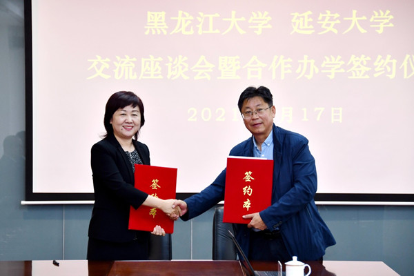 黑龍江經(jīng)濟(jì)網(wǎng)訊(全媒體見習(xí)記者 董廣碩 商祺)近日,黑龍江大學(xué)與延安大學(xué)在延安大學(xué)新城校區(qū)簽訂合作辦學(xué)框架協(xié)議。黑龍江大學(xué)黨委書記王永清、副校長于文秀,延安大學(xué)黨委書記張金鎖、副校長呂達(dá)、副校長譚虎娃等出席會議。