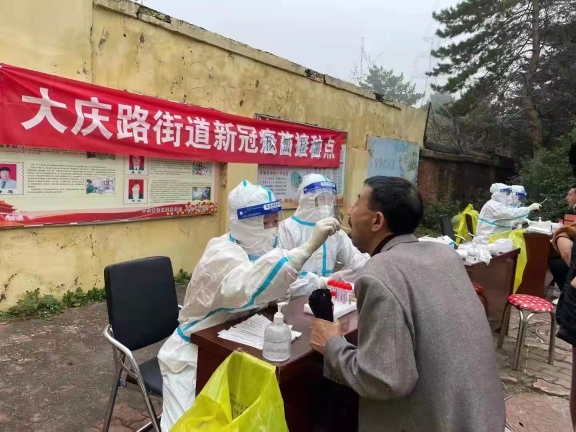 感人的事跡還有很多很多,醫(yī)院二十六病區(qū)護(hù)士孫立會,是一名今年年底就要退休的高年資護(hù)士,一直堅守在臨床一線,當(dāng)聽到需要下社區(qū)支援采集核酸,積極報名主動提出上夜班崗,在晚上打車前往社區(qū)替換白班同事時,出租車師傅聽說是去給市民采集核酸,下車時堅決拒收車費;護(hù)理部護(hù)士長王爽也將年邁生病的母親托付給別人照看,全身心的投入到了核酸采集工作中;由于人手緊張,醫(yī)院行政后勤工作人員也都積極加入到了核酸采集工作當(dāng)中,短短幾天共派出近50名有醫(yī)護(hù)資質(zhì)的機(jī)關(guān)干部前往社區(qū)為群眾采集核酸。