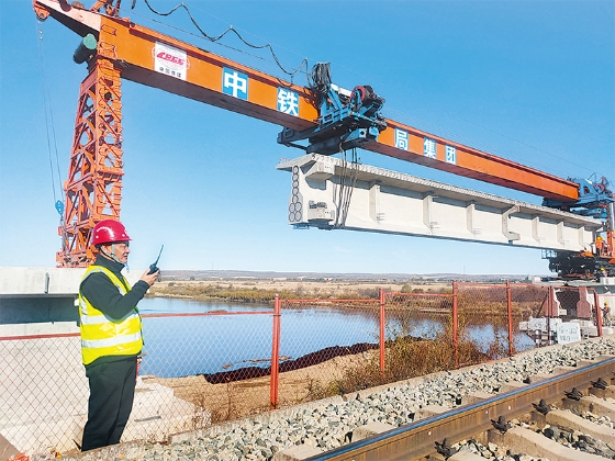據(jù)介紹,前不久北黑鐵路升級改造工程新建24座鐵路橋中的另一座孫吳段大河口中橋架梁已經(jīng)完成。橋梁位于孫吳縣境內(nèi),橋長112.73米,孔跨布置為3×32米,下部結(jié)構(gòu)和T梁預(yù)制施工由中鐵十局完成,梁體架設(shè)由中鐵十六局集團第五工程有限公司負責(zé)完成。