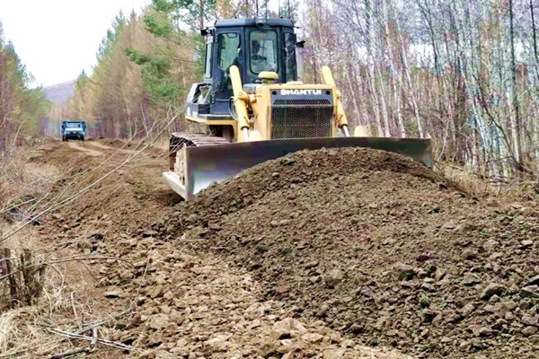 走進(jìn)大興安嶺林業(yè)集團(tuán)公司阿木爾林業(yè)局1—4線,就會看到火熱的勞動場面,只見大型翻斗車輛滿載砂石料蹣跚而過,伴隨著推土機(jī)的轟鳴聲,剛卸掉的砂石料很快被鏟平,道路在職工的辛勤工作下,一步步變寬、一步步向前延伸。
