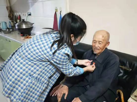 情系老黨員,踐行初心學(xué)黨史。社區(qū)黨總支書記來到老黨員單茂功家,老人今年已經(jīng)92歲,身體一直不好,書記詳細(xì)詢問了他最近的身體情況和生活中存在的困難,并叮囑他們保重身體,祝福他們健康長壽。最后,社區(qū)書記為老黨員戴上黨徽,與老黨員共同回顧黨的光輝歷史,傳承紅色精神,老人非常的感動,對社區(qū)的關(guān)心表示感謝。