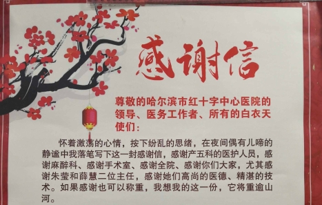 黑龍江經(jīng)濟網(wǎng)訊(孫麗霞 葉鴻 梁新立)“懷著激蕩的心情,按下紛亂的思緒,在夜間偶有兒啼的靜謐中我落筆寫下這一封感謝信……如果感謝也可以稱重,我想我的這一份,它將重逾山河?!苯?,哈爾濱市紅十字中心醫(yī)院(哈爾濱醫(yī)科大學(xué)附屬哈爾濱婦產(chǎn)醫(yī)院)產(chǎn)五科收到了來自患者家屬李先生的一封感謝信和一面錦旗。