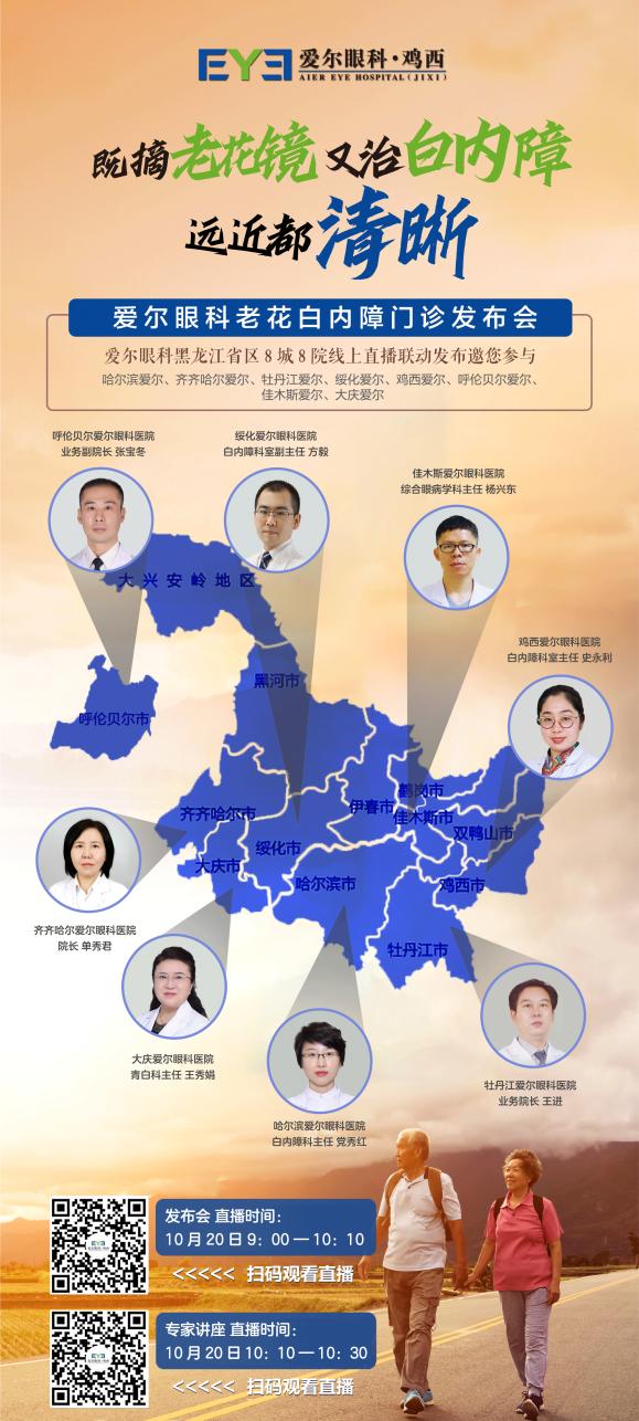 10月20日上午9點(diǎn)整,愛爾眼科黑龍江省區(qū)8城8院線上直播聯(lián)動(dòng)發(fā)布會(huì)邀您參與,帶您直擊老花白內(nèi)障手術(shù),為中老年人群的優(yōu)質(zhì)視野和高品質(zhì)生活保駕護(hù)航。(愛爾眼科)