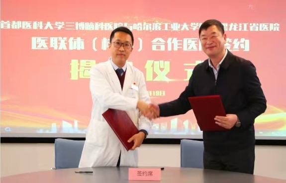 黑龍江經(jīng)濟網(wǎng)訊(林穎 董宇翔 梁新立) 10月19日,黑龍江省醫(yī)院與首都醫(yī)科大學(xué)三博腦科醫(yī)院結(jié)成醫(yī)聯(lián)體簽約揭牌儀式在北京舉行。今后雙方將在遠程會診、技術(shù)指導(dǎo)與支持、人才培養(yǎng)和資源共享等多方面開展緊密合作,攜手共進,優(yōu)勢互補,共同提高在神經(jīng)科學(xué)領(lǐng)域臨床、科研及教學(xué)水平,提升醫(yī)療服務(wù)能力,切實為黑龍江省及周邊地區(qū)百姓提供優(yōu)質(zhì)的醫(yī)療衛(wèi)生服務(wù)。