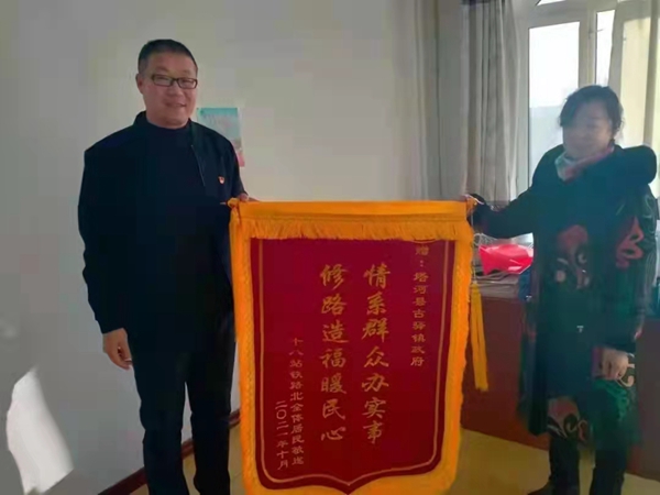 “路修好了,交通順暢了,心情也好了!”對(duì)眼前這條寬敞、整潔的道路,鐵路北居民帶著喜悅的笑容紛紛向古驛鎮(zhèn)工作人員豎起了大拇指,并為古驛鎮(zhèn)黨委、政府送去了“情系群眾辦實(shí)事,修路造福暖民心”錦旗。