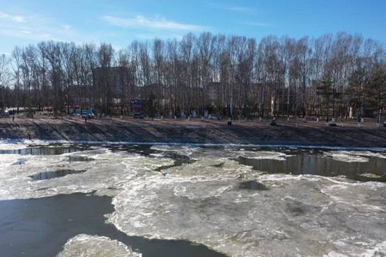 第二次是在10月末11月初開(kāi)始出現(xiàn)冰情,整個(gè)冰封的過(guò)程,從最初江水推著冰絮、冰塊、冰排流動(dòng),大塊大塊的冰塊順江而下,會(huì)發(fā)出咔咔的碰撞聲。隨著氣溫的逐漸降低,冰排會(huì)越凍越大,冰層也會(huì)越積越深,直至整個(gè)江面全面封凍。冬季流冰期與春季流冰期相比,流速相對(duì)緩慢,黑龍江呼瑪段整個(gè)冰凍的過(guò)程會(huì)持續(xù)20余天。今年冬季流冰期與去年相比,時(shí)間持平。