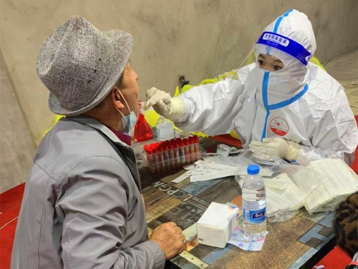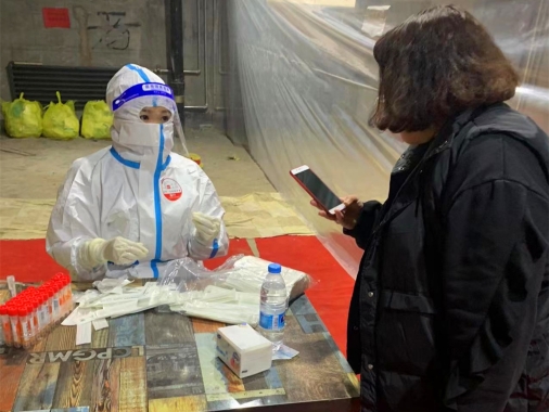 10月30日下午17時,畢贏接到單位領(lǐng)導(dǎo)的通知,準(zhǔn)備好支援社區(qū)核酸采集,有可能今晚22點(diǎn)開始,有可能明早8點(diǎn)開始。就這樣,畢贏趕緊通知親戚朋友婚禮暫時取消,馬上要去社區(qū)支援。10月31日早8點(diǎn),由省醫(yī)院吳丹紅護(hù)士長帶隊(duì),畢贏一行40名護(hù)士下沉到了新香坊鎮(zhèn)社區(qū)為那里的居民進(jìn)行核酸采集支援。就這樣,婚紗面前畢贏毅然決然地選擇了防護(hù)服,和她的戰(zhàn)友們并肩奔赴社區(qū)支援核酸采集,因?yàn)樗酪咔檫^后的婚禮才會更有意義。
