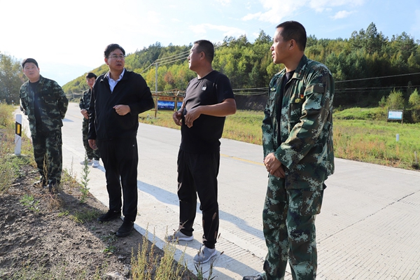 阿木爾林業(yè)局黨委副書記、局長韓鳳泉(右三)深入到龍河林場,檢查指導旅游產(chǎn)業(yè)工作(王力 攝)
