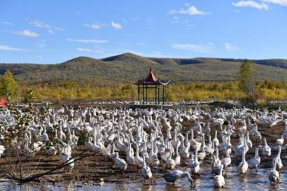 新林林業(yè)局依托當(dāng)?shù)厮葚S美的生態(tài)環(huán)境優(yōu)勢(shì),扶持開展“生態(tài)鵝”養(yǎng)殖項(xiàng)目,為職工開拓了增收致富的新途徑(崔紅霞 攝)