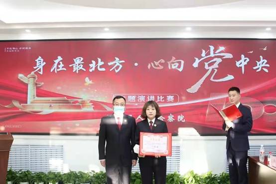 各位評委綜合考量場上選手語言表達(dá)、演講技巧、演講效果、儀表形象及稿件質(zhì)量,現(xiàn)場打分并即時(shí)公布,氣氛緊張激烈。評委老師王曉慧在點(diǎn)評環(huán)節(jié)用“熱情”“激昂”“振奮”三個(gè)詞對各位參賽選手給予充分肯定,她指出,通過各位參賽選手的現(xiàn)場表現(xiàn)和稿件質(zhì)量,可以感受到大家準(zhǔn)備得都很充分,感悟也很深刻,也從側(cè)面展現(xiàn)了檢察干警對黨的熱愛和良好風(fēng)貌。評委老師李光生表示,今天這場比賽,展示了塔河檢察人的精神風(fēng)貌。以演講比賽的形式豐富黨建工作,讓廣大干警更加樂于參與,這種方法值得推廣,也期待檢察機(jī)關(guān)在今后的工作中進(jìn)一步發(fā)揮黨建引領(lǐng)作用,加強(qiáng)組織、思想、隊(duì)伍、紀(jì)律方面的建設(shè),以高質(zhì)量的黨建引領(lǐng)推動(dòng)塔河檢察工作高質(zhì)量發(fā)展。