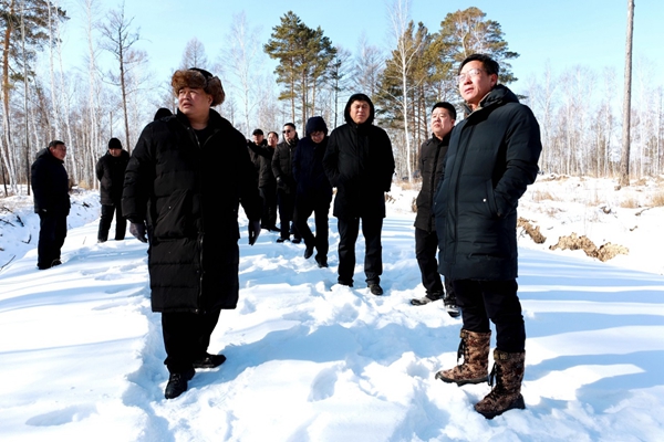 阿木爾林業(yè)局由林業(yè)局黨委書記胡守慶(最前排左),林業(yè)局黨委副書記、局長韓鳳泉(最前排右)組成體驗(yàn)式調(diào)研組,深入北極島調(diào)研旅游產(chǎn)業(yè)(王力 攝)