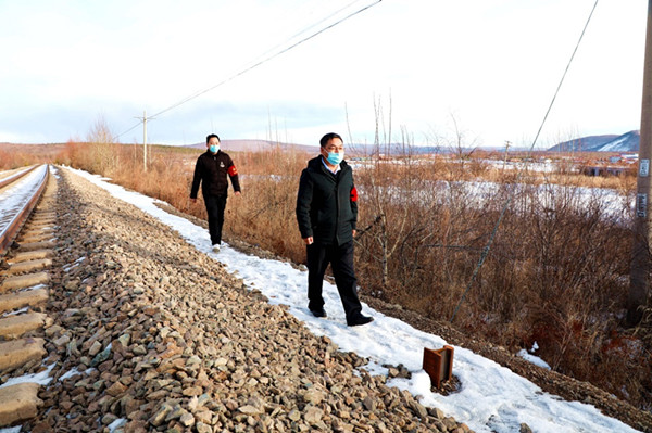 阿木爾林業(yè)局護路人員巡護鐵路線路安全(王力 攝)