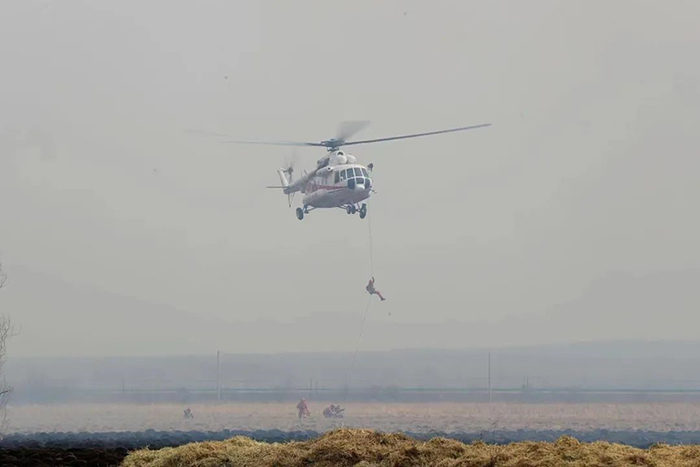 上午11時(shí)許,演練指令正式下達(dá),信號(hào)彈騰空而起,一場(chǎng)以管護(hù)區(qū)內(nèi)某重點(diǎn)林區(qū)發(fā)生火災(zāi)為演練背景的撲火戰(zhàn)斗全面打響。隨著一道道命令的下達(dá),各參演單位指戰(zhàn)員迅速行動(dòng),按照林火監(jiān)測(cè)和火情報(bào)告、接警處置和啟動(dòng)預(yù)案、組織兵力投送、組織指揮滅火行動(dòng)等工作流程,有序組織開(kāi)展演練。演練中,撲火隊(duì)伍結(jié)合火場(chǎng)態(tài)勢(shì),科學(xué)選用兩翼對(duì)進(jìn)、鉗形夾擊,多點(diǎn)突破、分段圍殲等戰(zhàn)法,重點(diǎn)演練了無(wú)人機(jī)滅火、直升機(jī)空中作業(yè)、常規(guī)滅火、大型裝備滅火等內(nèi)容。來(lái)自市森林消防支隊(duì)、應(yīng)急航空救援伊春站、市應(yīng)急救援支隊(duì)、市消防救援支隊(duì),烏伊嶺、湯旺河、新青、紅星、五營(yíng)、上甘嶺、友好、翠巒、美溪林業(yè)局公司撲滅火大隊(duì),新青林業(yè)局公司紅林、湯林林場(chǎng)分公司快速撲滅火小隊(duì)和民兵預(yù)備隊(duì)等單位,共計(jì)800余人參加演練。