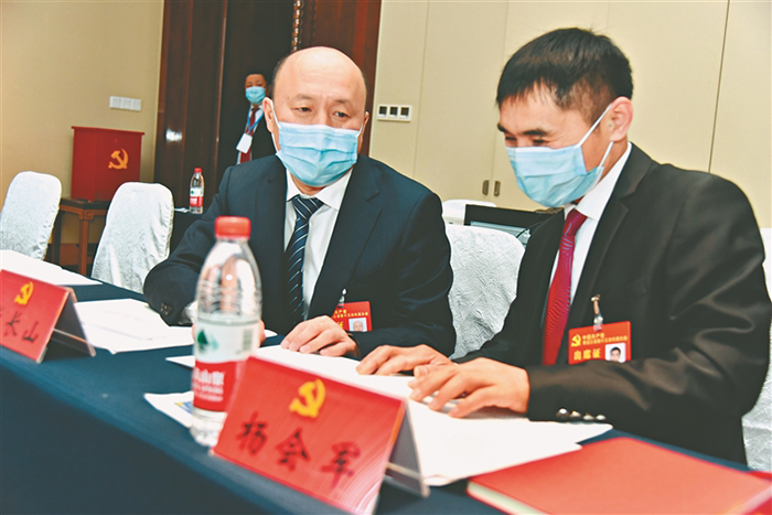 兩個(gè)礦山人,張長山和楊會(huì)軍,一個(gè)是七臺河礦業(yè)公司黨委書記、董事長,一個(gè)是龍湖煤礦東一采區(qū)701采煤隊(duì)班長、全國勞動(dòng)模范。這兩位黨代表結(jié)識于千尺井下,結(jié)誼于采煤崗位。此次同來參加省第十三次黨代會(huì),兩人時(shí)常在開會(huì)間隙交談彼此參會(huì)的感受。