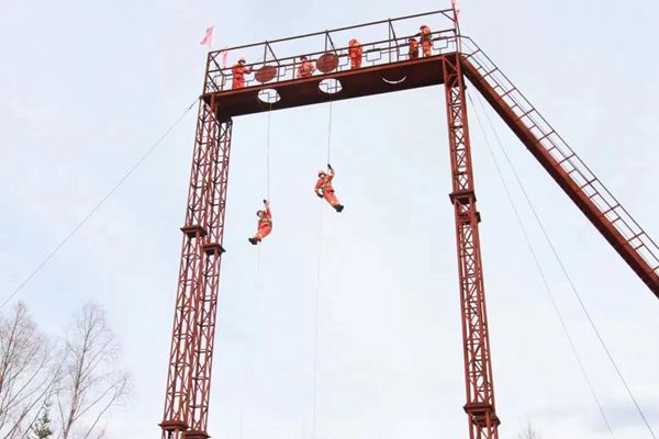 訓(xùn)練過(guò)程中,中隊(duì)長(zhǎng)馬振濤對(duì)高空索滑需要注意的事項(xiàng)和方法方式進(jìn)行了詳細(xì)講解,并將在訓(xùn)練過(guò)程中容易出現(xiàn)的錯(cuò)誤動(dòng)作,結(jié)合實(shí)際訓(xùn)練做了現(xiàn)場(chǎng)演示。指導(dǎo)參訓(xùn)人員克服恐懼心理,嚴(yán)格按照理論輔導(dǎo)、教學(xué)大綱、索滑降訓(xùn)練的步驟進(jìn)行科學(xué)訓(xùn)練。堅(jiān)持由簡(jiǎn)到繁、由易到難、循序漸進(jìn)的原則,對(duì)安全背帶穿戴、索控器具裝卸繩、不同高度滑降、遇到突發(fā)問(wèn)題快速處理等內(nèi)容進(jìn)行了系統(tǒng)訓(xùn)練。一次次繩結(jié)、一次次索滑降、一次次健步如飛……千錘百煉中隊(duì)員們逐步熟練了滑降的操作流程,克服了恐懼心理,取得了明顯成效。