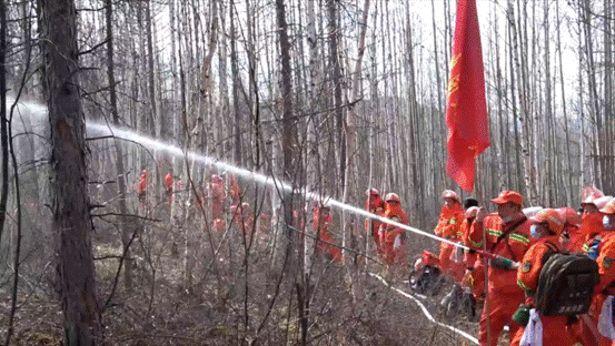 鏡頭二:由林業(yè)局黨委書記魯智勇,黨委委員、工會主席任志遠組成的森林防火前線指揮部,根據(jù)無人機回傳的實時畫面,果斷下達撲救命令。他們結(jié)合氣象條件,采取“兩翼對進,鉗形夾擊”的撲火戰(zhàn)術(shù),運用常規(guī)風(fēng)力滅火和以水滅火相配合的方式組織撲救。