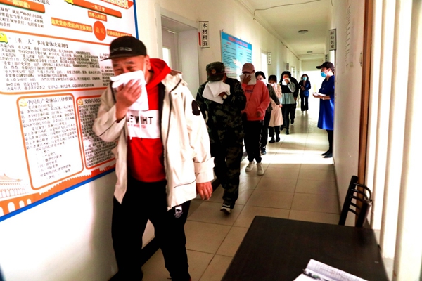 阿木爾林業(yè)局開展防災減災應急演練現(xiàn)場,干部職工正在沿逃生路徑有秩序疏散(王力 攝)