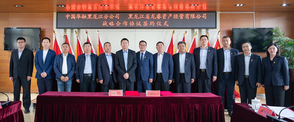 龍睿公司黨委書記、董事長、總經理鄶曉龍,中國華融黑龍江分公司黨委書記、總經理所東斌代表雙方簽訂協(xié)議。龍睿公司副總經理、總會計師王貴軍,董事會秘書、總經理助理陳良謙,中國華融黑龍江分公司副總經理王新潮、風險總監(jiān)田榮成及雙方相關部門負責人參加了簽約儀式。