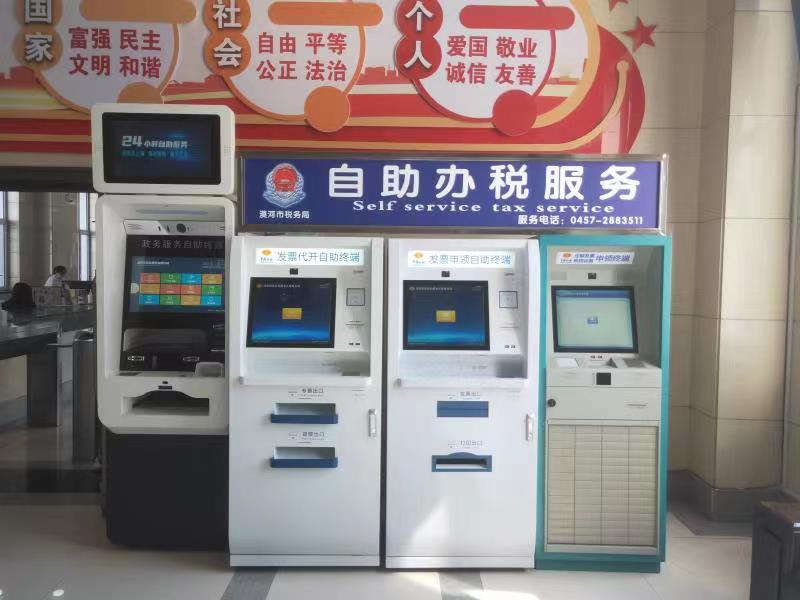 漠河市稅務(wù)局在政務(wù)服務(wù)大廳配置了3臺自助辦稅終端,分別是發(fā)票代開自助終端、發(fā)票申領(lǐng)自助終端和定額發(fā)票申領(lǐng)終端。