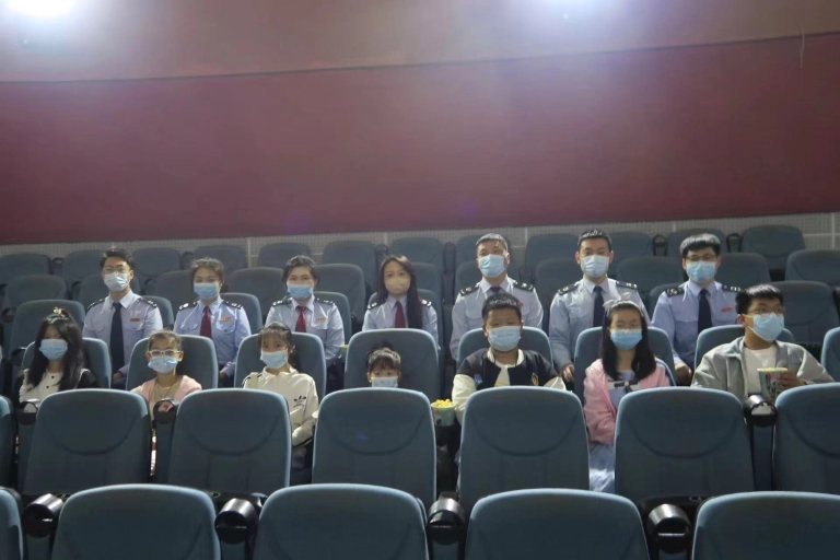 稅務(wù)工作人員與孩子們一同觀影