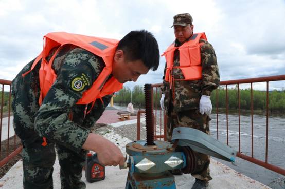 阿木爾林業(yè)局防汛人員關(guān)閉閘門(mén),防止因額木爾河水上漲倒灌居民區(qū)(王力 攝)