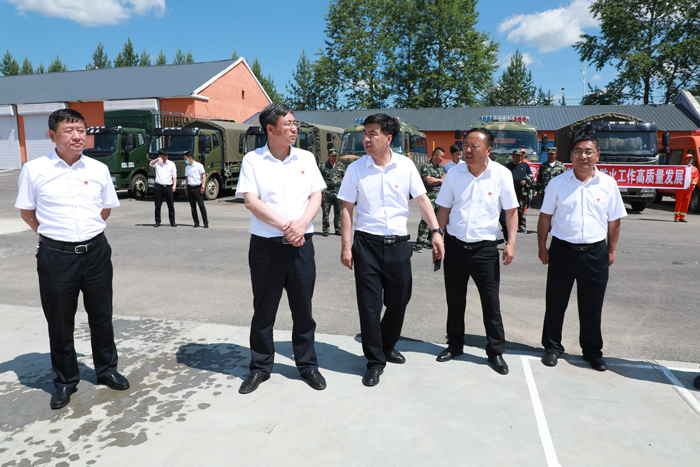 集團(tuán)森林防火辦黨委副書記、紀(jì)委書記、督查處長(zhǎng)、工會(huì)主席回軍峰(中)深入到阿木爾林業(yè)局防火辦,點(diǎn)對(duì)點(diǎn)指導(dǎo)黨建共建工作(王力 攝)