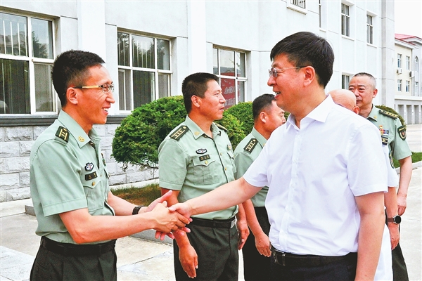 7月29日上午,在伊春軍分區(qū),隋洪波親切慰問了官兵代表,并與軍分區(qū)有關(guān)領(lǐng)導(dǎo)干部座談。隋洪波指出,多年來,駐伊部隊(duì)和廣大民兵積極參與全市疫情防控、搶險(xiǎn)救災(zāi)、維穩(wěn)處突、脫貧攻堅(jiān)等工作,為守好祖國“北大門”和促進(jìn)伊春改革發(fā)展穩(wěn)定作出了突出貢獻(xiàn)。希望駐伊部隊(duì)官兵深入貫徹習(xí)近平強(qiáng)軍思想,牢牢把握黨管武裝正確方向,堅(jiān)持黨對(duì)軍隊(duì)的絕對(duì)領(lǐng)導(dǎo),確保絕對(duì)忠誠、絕對(duì)純潔、絕對(duì)可靠,永遠(yuǎn)做黨和人民的忠誠衛(wèi)士。希望駐伊部隊(duì)官兵一如既往地支持伊春經(jīng)濟(jì)社會(huì)發(fā)展,積極參與伊春建設(shè),為加快伊春高質(zhì)量轉(zhuǎn)型發(fā)展繼續(xù)貢獻(xiàn)力量,在推進(jìn)伊春綠色崛起中發(fā)揮更大作用。