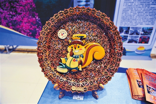 展覽現(xiàn)場,北沉香、核桃作品,賽事吉祥物掛件、木拼畫和版畫等,憑借其精湛的技藝、貼近生活和賽事的文創(chuàng)產(chǎn)品,吸引了眾多參觀者的眼球?!斑@次我們展示了具有小興安嶺特色的木藝品和冰壺、吉祥作品,通過直觀形象的展示,讓更多人了解林區(qū)元素的文創(chuàng)產(chǎn)品和技藝,宣傳和弘揚伊春的林區(qū)文化,讓我市的木制工藝品進一步發(fā)揚光大?!泵澜舅囉邢挢熑喂究偨?jīng)理王美江介紹說。